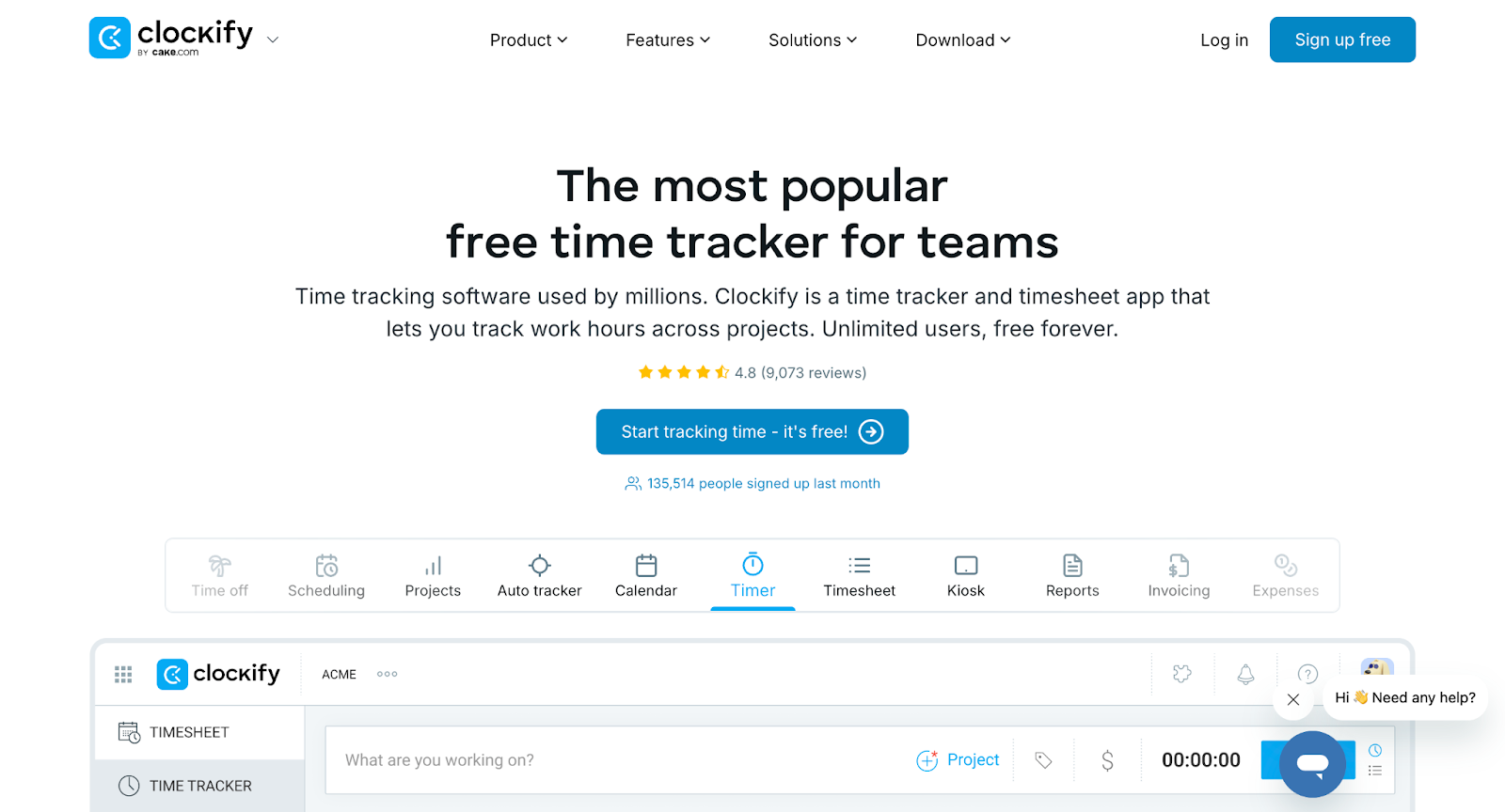 Clockifyは無料プランでもユーザー数が無制限で利用できるタイムトラッキングツールで、タイマー・手動入力・タイムシートの方法で働き方に合わせて時間を記録できます。