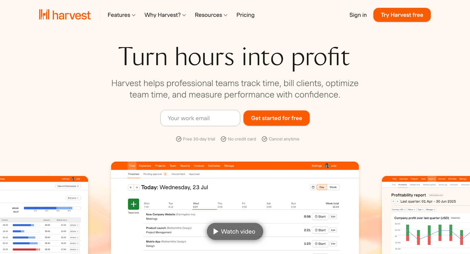 Harvestはタイムトラッキングと請求書作成を一体化したツールで、作業時間を記録するとそのデータをもとに請求書を作成でき、稼働報告から請求までスムーズに行えます。
