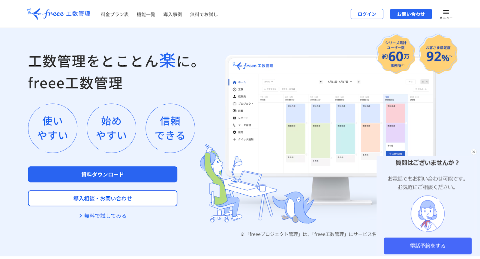 入力された工数はリアルタイムで集計されCSVエクスポートが可能です。freee会計などと組み合わせてバックオフィス業務を管理でき、30日間の無料トライアルで試せます。