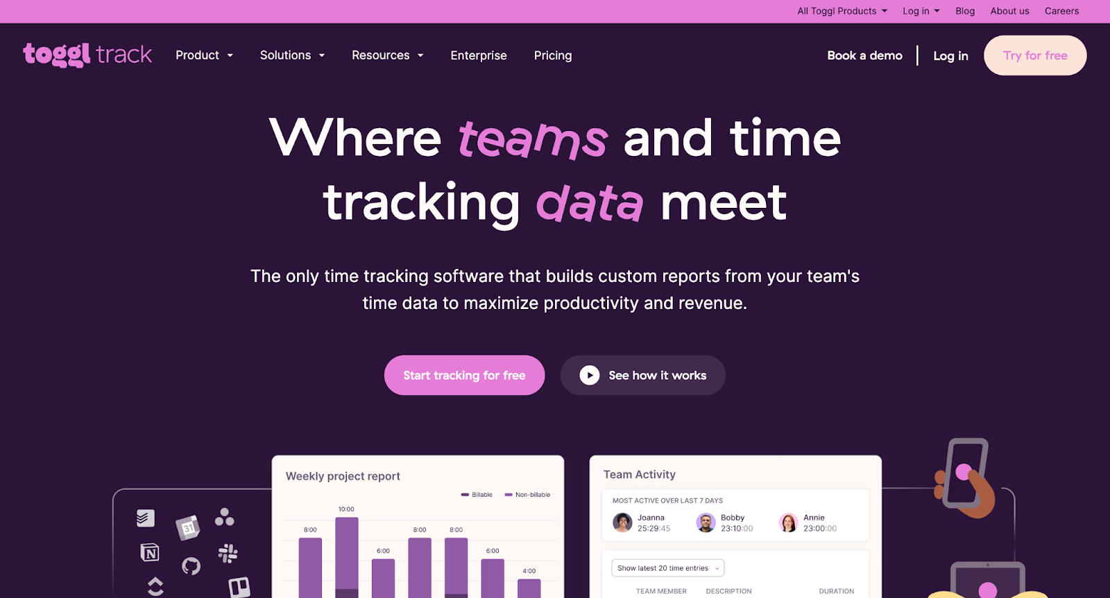 Toggl Trackは世界中で利用されているタイムトラッキングアプリで、ワンクリックでタイマーを開始でき、無料プランは5名まで個人や小規模チームで試しやすい設計です。